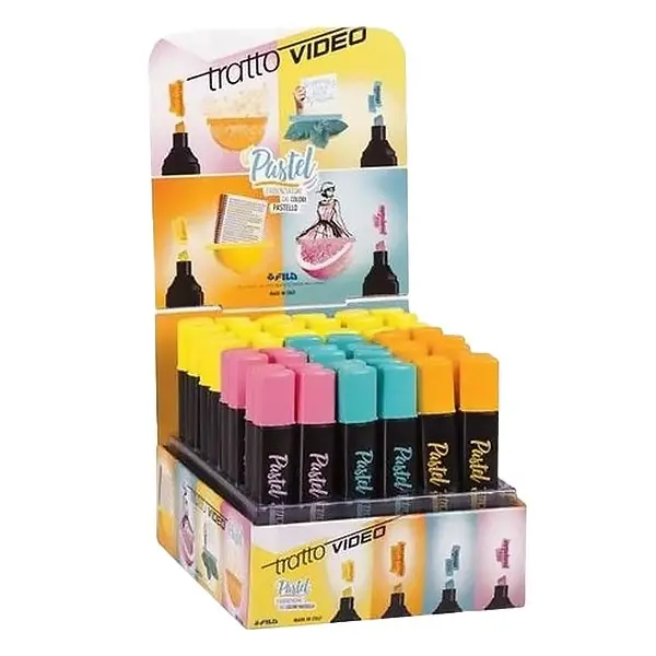 Tratto Video, „Made in Italy” vágott hegyű szövegkiemelő. Vízbázisú, a tinta hamar megszárad, ideális az iskolai, irodai használathoz. Ideális normál papírhoz, indigóhoz, fénymásoló- és fax papírhoz.